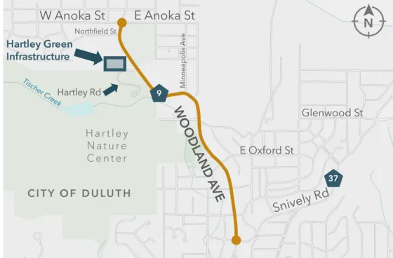 More information on the green infrastructure project is available at: https://duluthmn.gov/parks/parks-planning/progress-in-the-parks/woodland-Hartley-green-infrastructure.