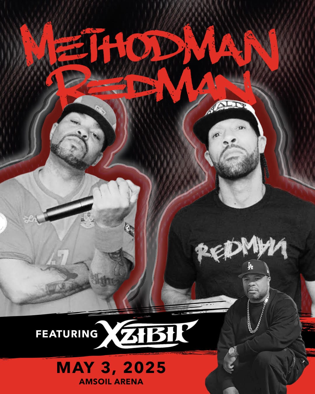 Hip-hop fans are in for an epic night as Method Man (of Wu-tang Clan), Redman (Def Squad), and Xzibit will take the AMSOIL Arena stage on Saturday, May 3, 2025. Underground rap icon Immortal Technique will join as a special guest performer.